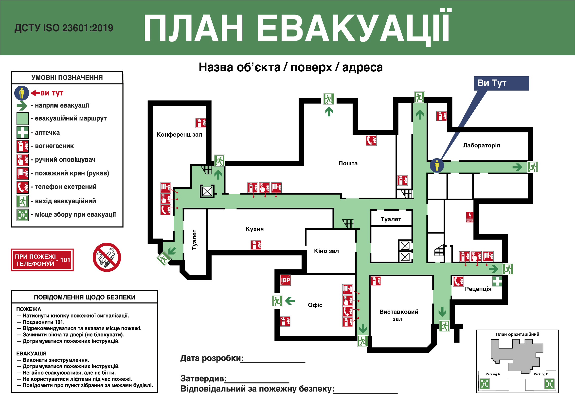 - готує та передає Вам на погодження один екземпляр плану евакуації